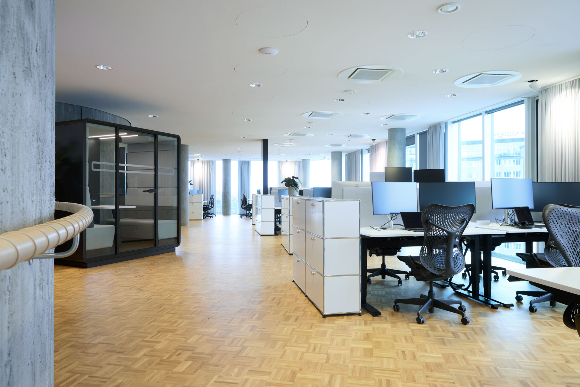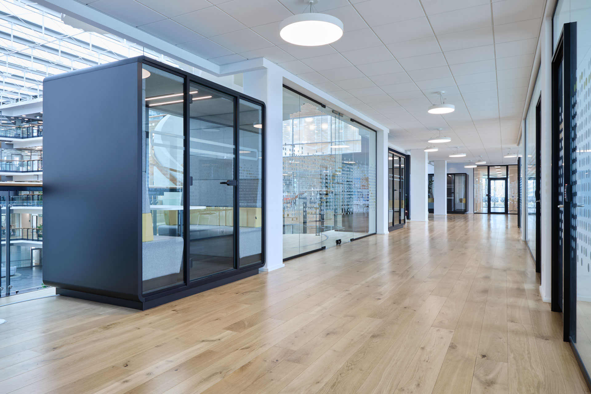 Anvend de højteknologiske arbejdsbokse fra Hush serien, hvor alt fra akustik, ventilation og elinstallationer er integreret. Laves såvel med integrerede møbler eller tomme med mulighed for helt eget og fleksibelt møbelvalg. Alle boksene kan til hver en tid flyttes rundt, hvorfor indretningen altid er til revision efter behov. Således undgås helt omkostningstunge og statiske lokaleløsninger.