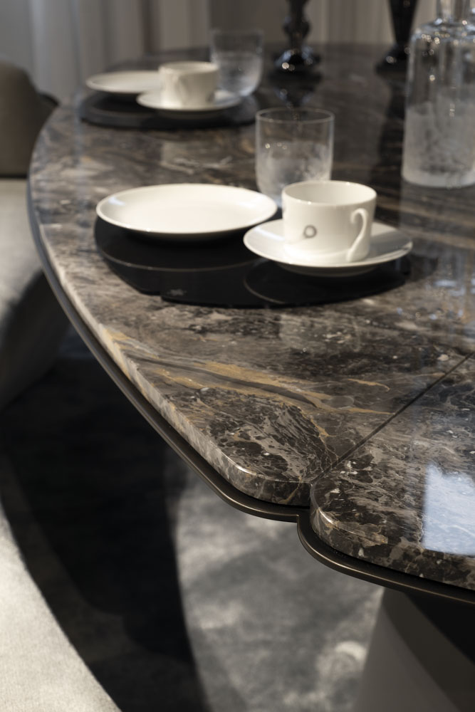 Alternativt, vælg et lavere Floria Table og kombiner det med Giorgetti’s helt nye designsamarbejde med Maserati med Lorelei kollektionen af hhv. sofaer og loungestole. Et unik nyt intimt spisemiljø.