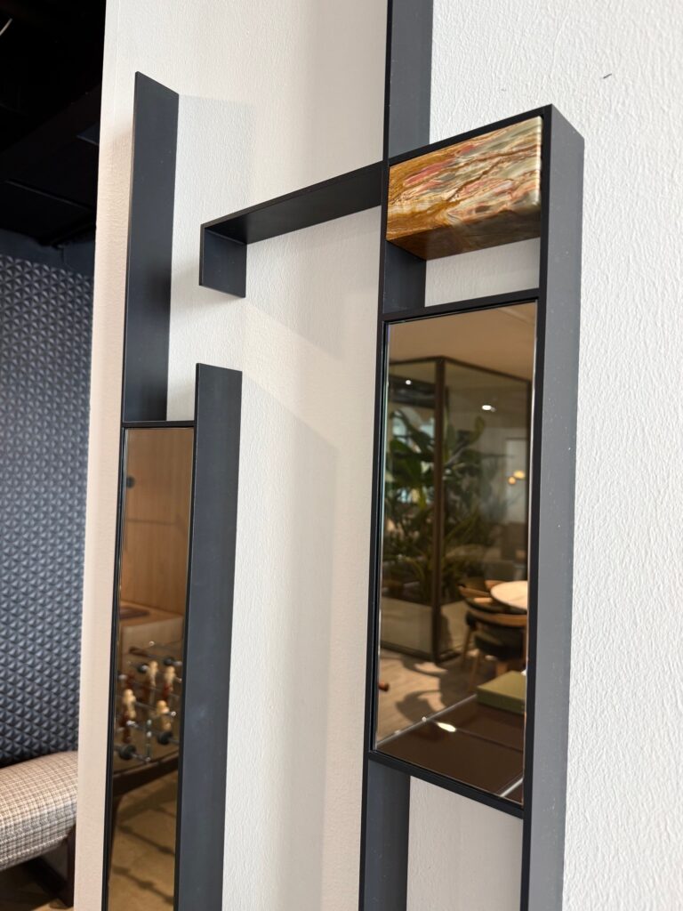 Arkitektoniske og dekorativt spejlsæt fra italienske MDF Italia bestående af to spejle som kan sættes sammen på forskellige måder vertikalt som horisontalt – eller benyttes enkeltvis! Sælges kun samlet.