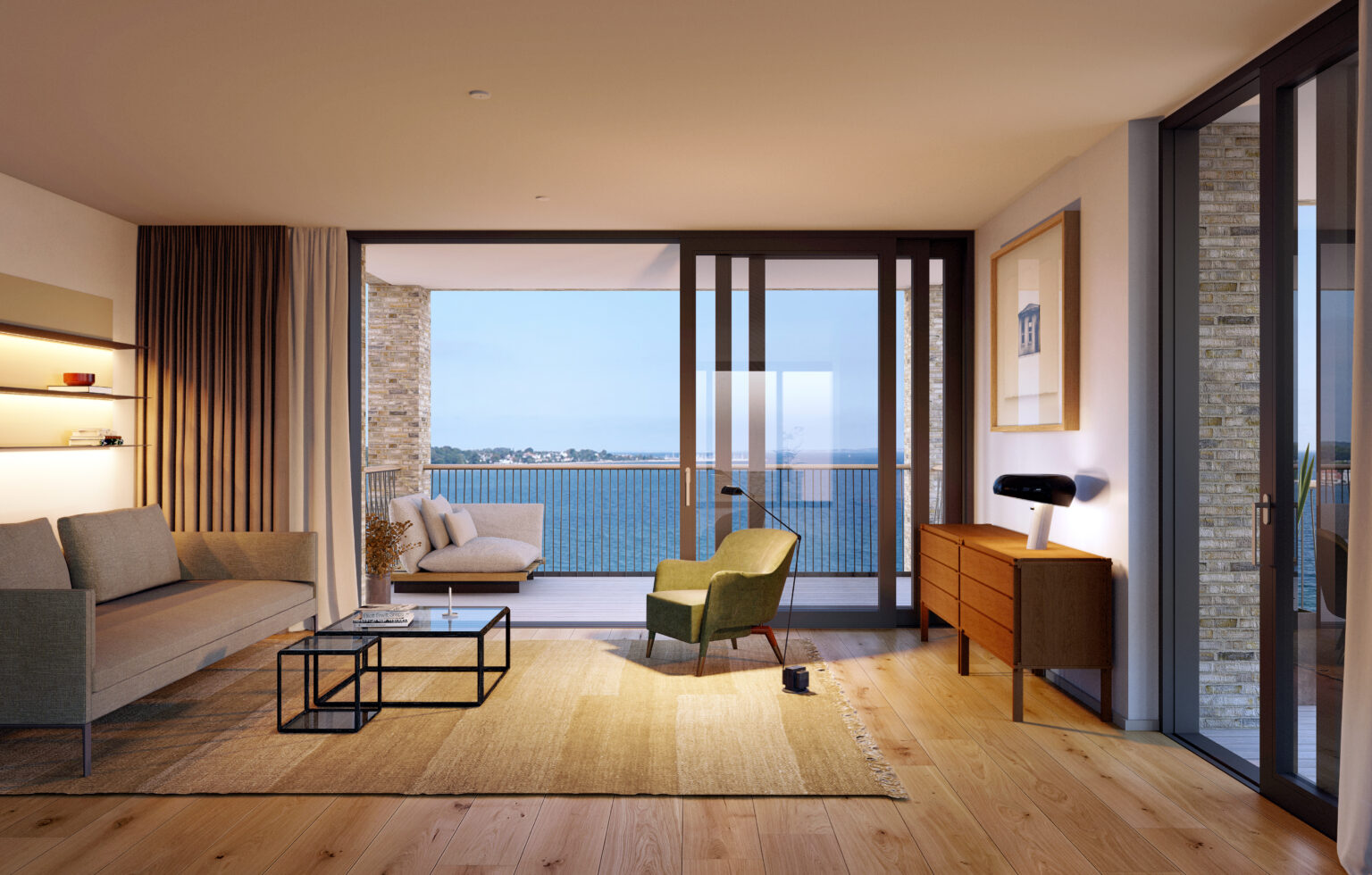 Danica Pension står bag udviklingen af det unikke boligbyggeri i området syd for Tuborg Havn, kaldet Tuborg Strandeng. Et enestående område direkte til vandet som udvikles til en naturstrandeng med offentlig adgang, hvor to særdeles eksklusive lejlighedsboligområder udvikles. Et for lejelejligheder kaldet Bakkedraget og et for ejerlejligheder kaldet Kysthusene. Alle tegnet af det anerkendte Lundgaard & Tranberg Arkitekter. En imponerende arkitektur der på en gang støtter op om naturengen og samtidig giver mulighed for en livsstil i luksus på kanten af strand og by. INTERSTUDIO blev kontaktet af Danica Pension for at medvirke til udviklingen af visualiseringer af indretningsmulighederne i nogle af lejligheder. Sammen med Lundgaard & Tranberg Arkitekter blev forskellige stemninger designet.